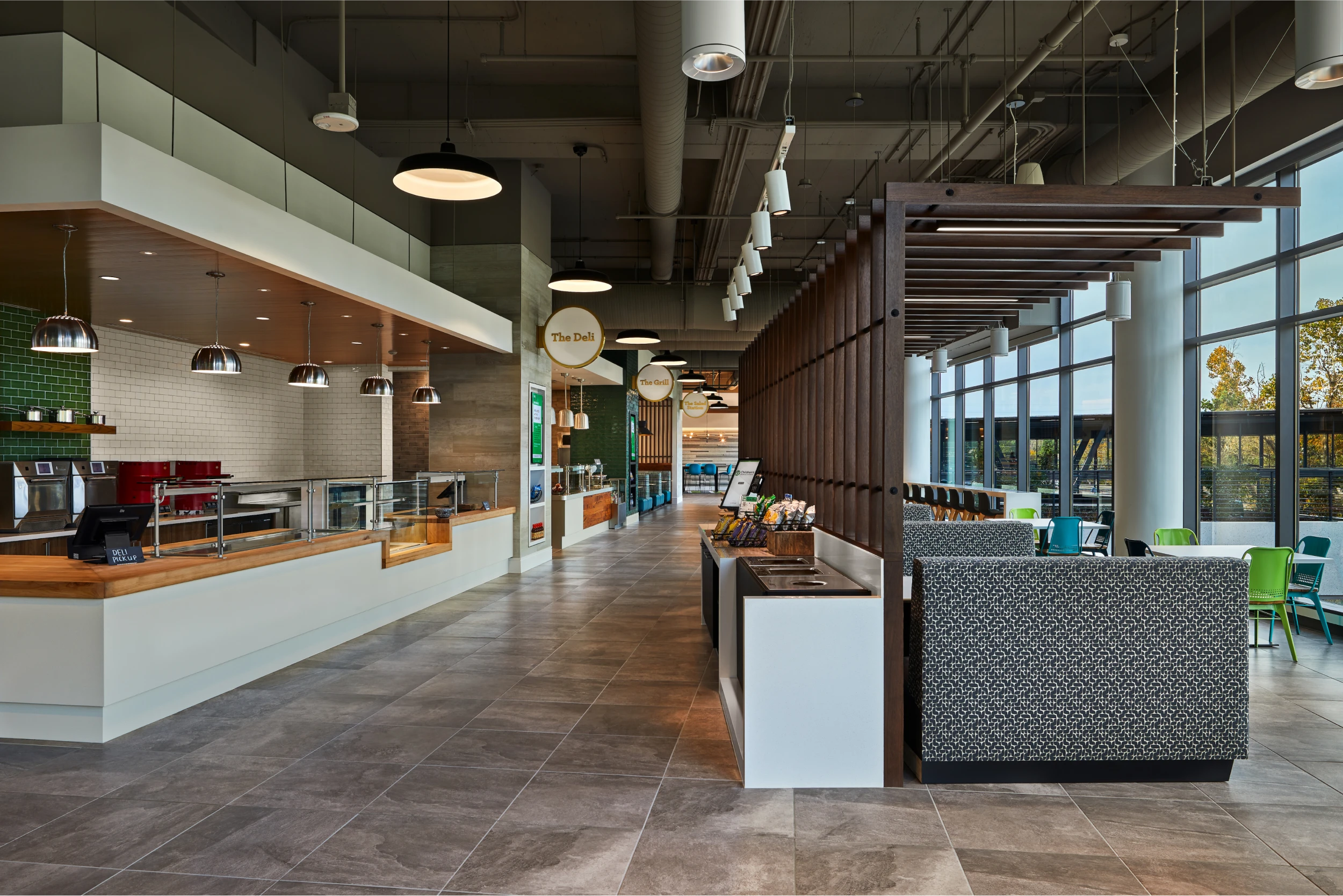 These amenities encourage movement throughout the day, from stairways with outdoor views to ergonomic tools, and complement the Strong4Life programs. Employees can enjoy greenspaces, walking and biking trails, and outdoor fitness areas, while the Strong4Life Fitness Center provides all-day access with support from trainers and health coaches.