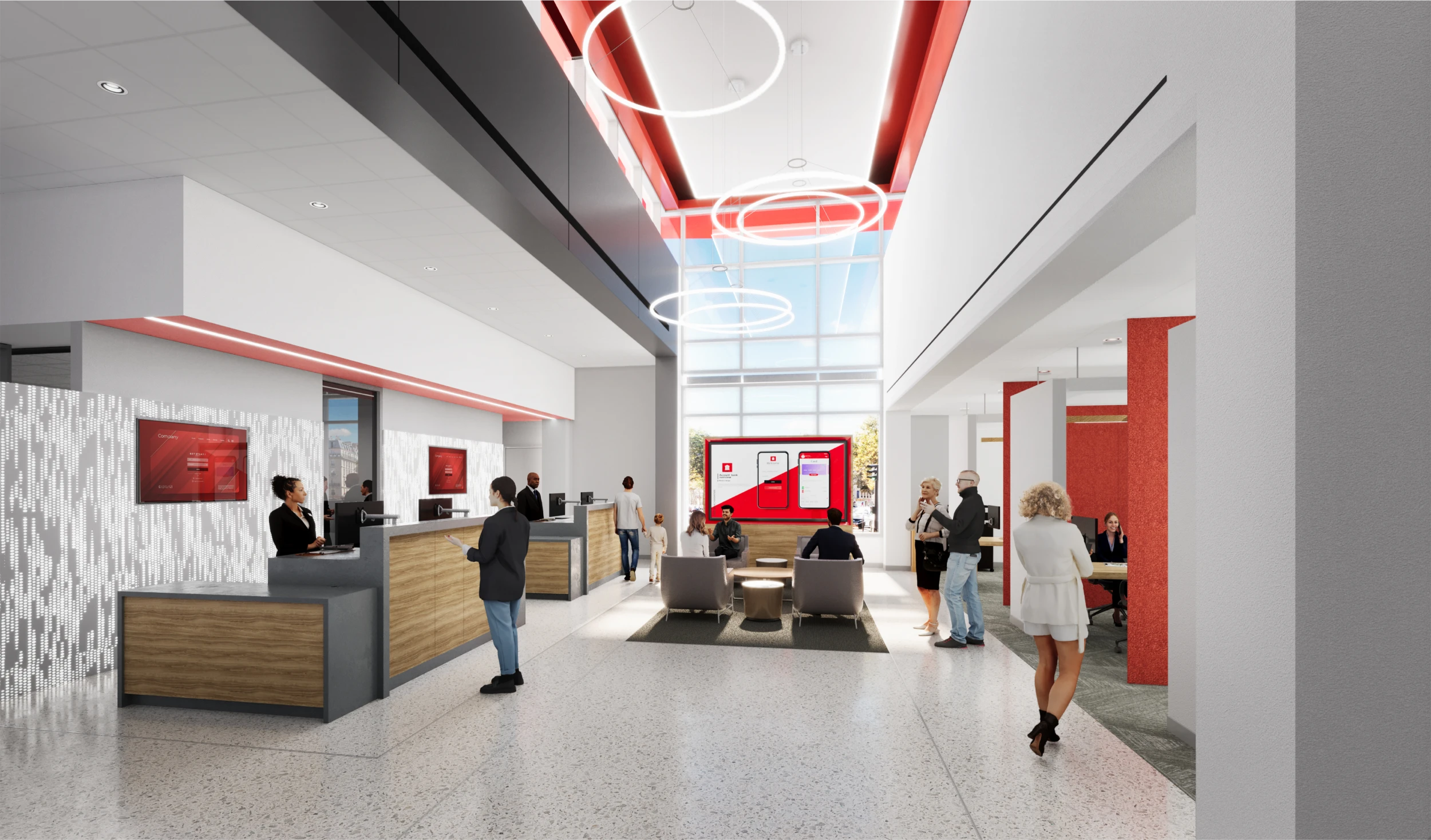 Our trusted financial services client, known for prioritizing customers and engaging with local communities, partnered with us on a retail branch project that blends tradition with innovation. The design enhances the customer experience with easy navigation, quick service, and comfortable waiting areas, while advanced digital tools like interactive tellers bridge the gap between traditional and digital banking. Flexible spaces support both transactions and community events, reinforcing the branch as a community hub that embodies the client’s values of service, innovation, and connection.