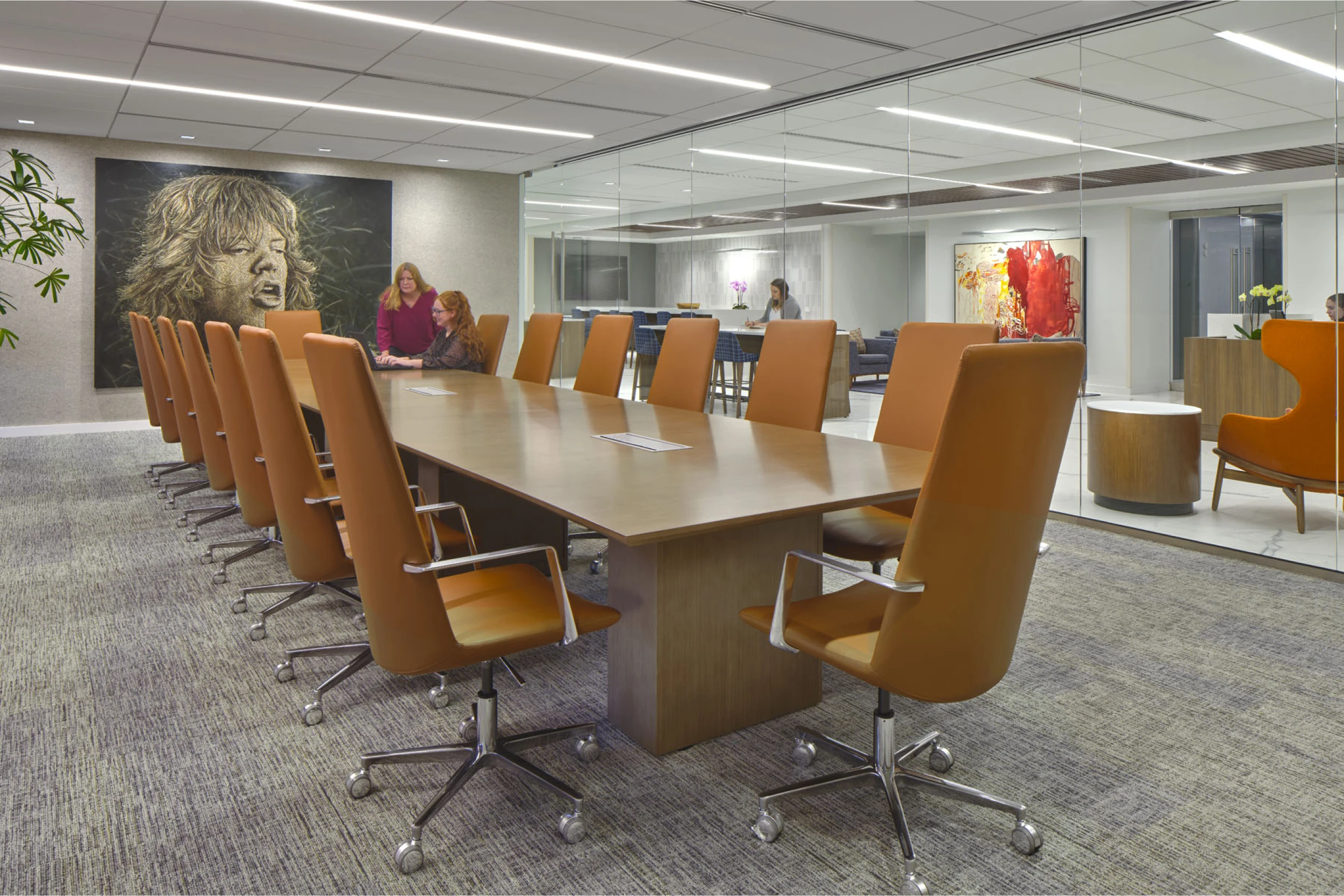 A highlight of the design is the integration of the firm's vast art collection, showcased throughout the office to enhance the aesthetic. By maintaining core corporate finishes while incorporating unique elements, the design creates a one-of-a-kind experience for the Atlanta location, setting it apart from the firm’s other offices.