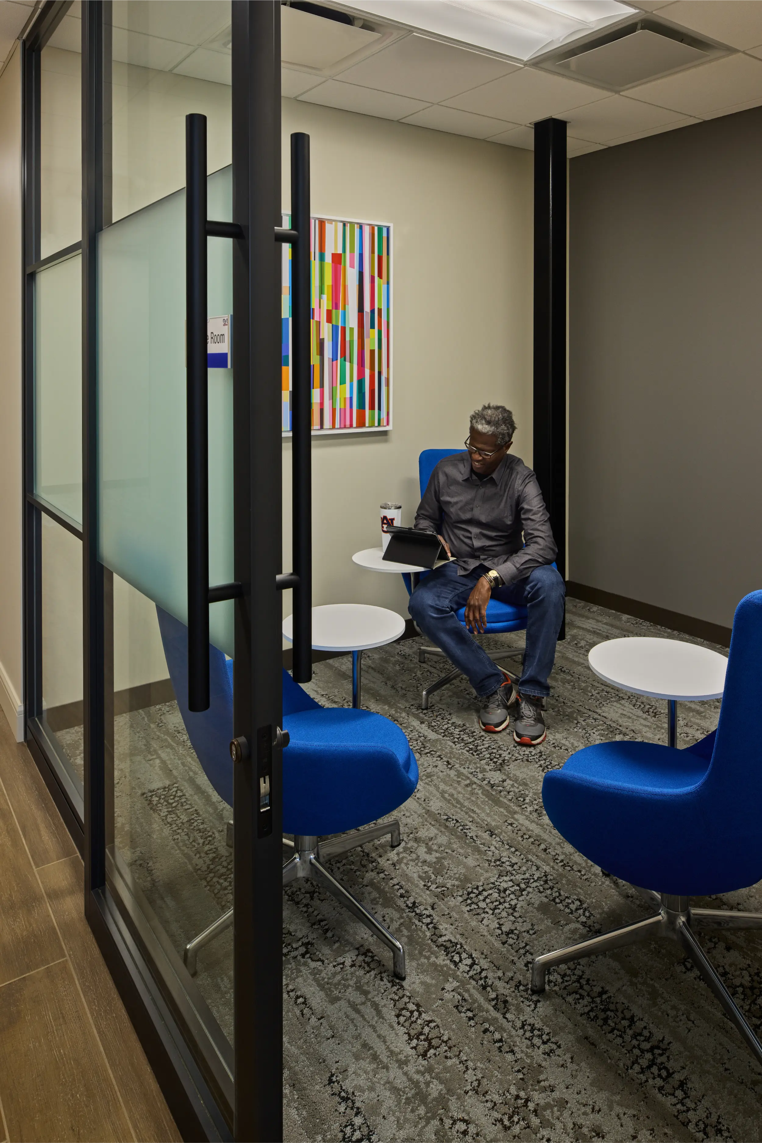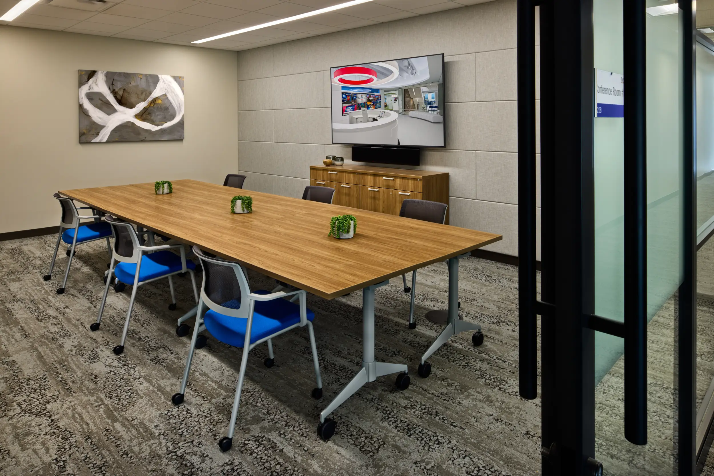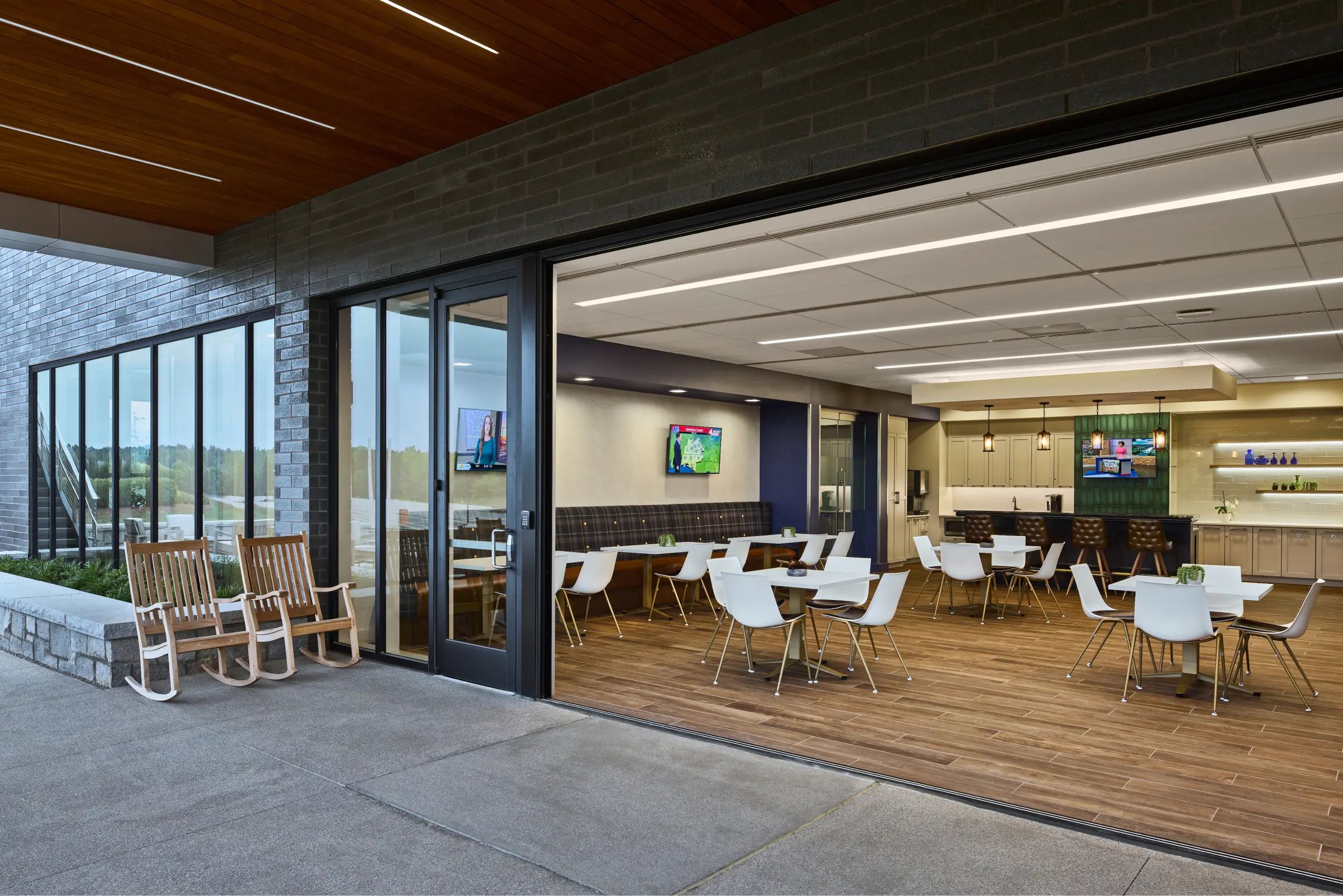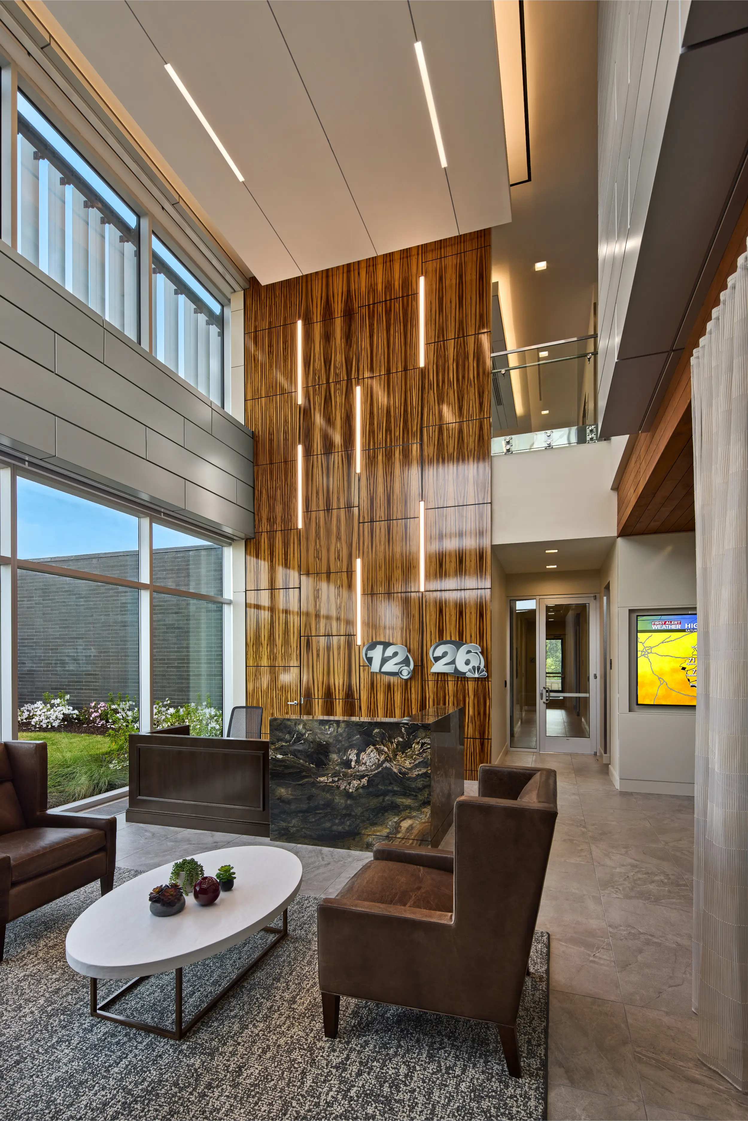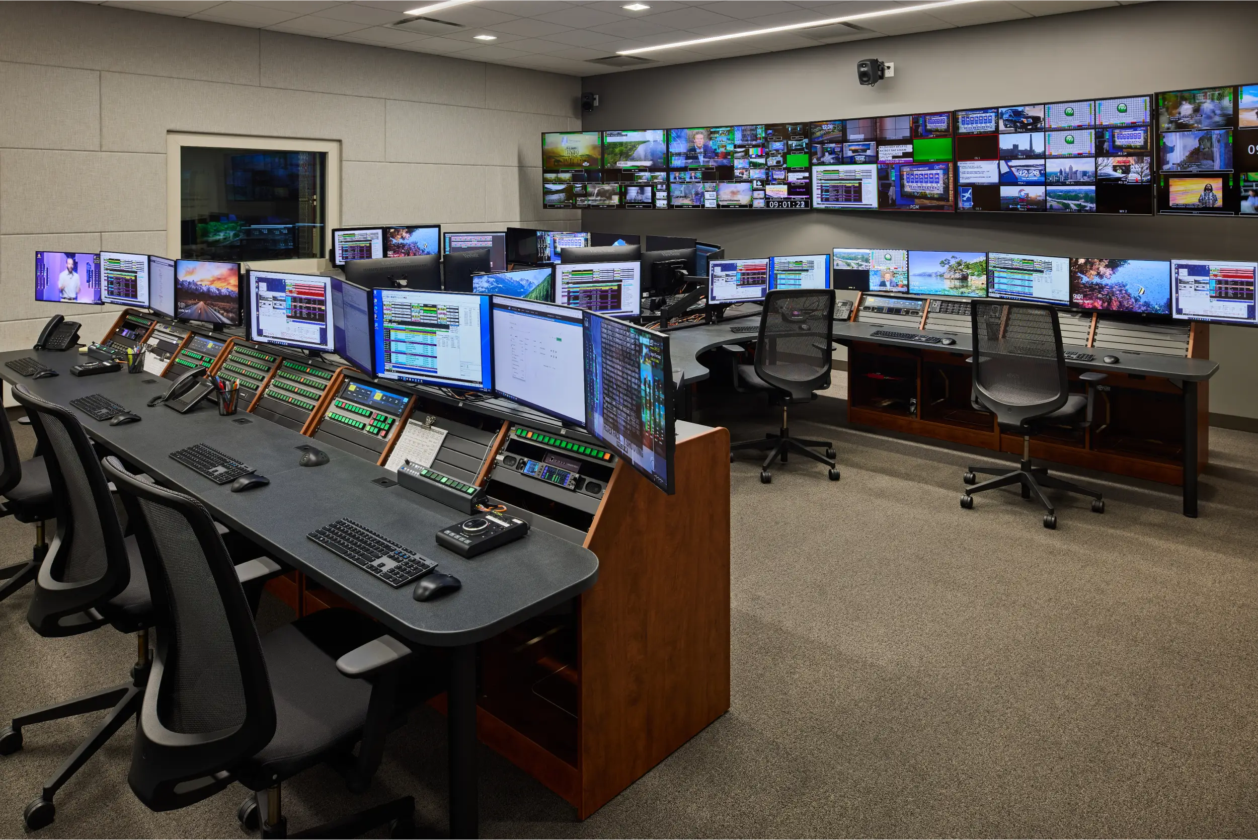 Gray TV’s new station in Augusta, Georgia, is a state-of-the-art broadcast facility. WRDW’s cutting-edge technology has made it the premier station in the region, playing a vital role in the surrounding communities. The functionality of the new station is housed in a familiar aesthetic that is relaxed and rooted in the vernacular of the area. The openness to nature and the textures of the finishes and furnishings create a sense of familiarity and comfort that reflects Augusta. On-site amenities provide employees with outdoor spaces and a fitness center to promote both mental and physical well-being.