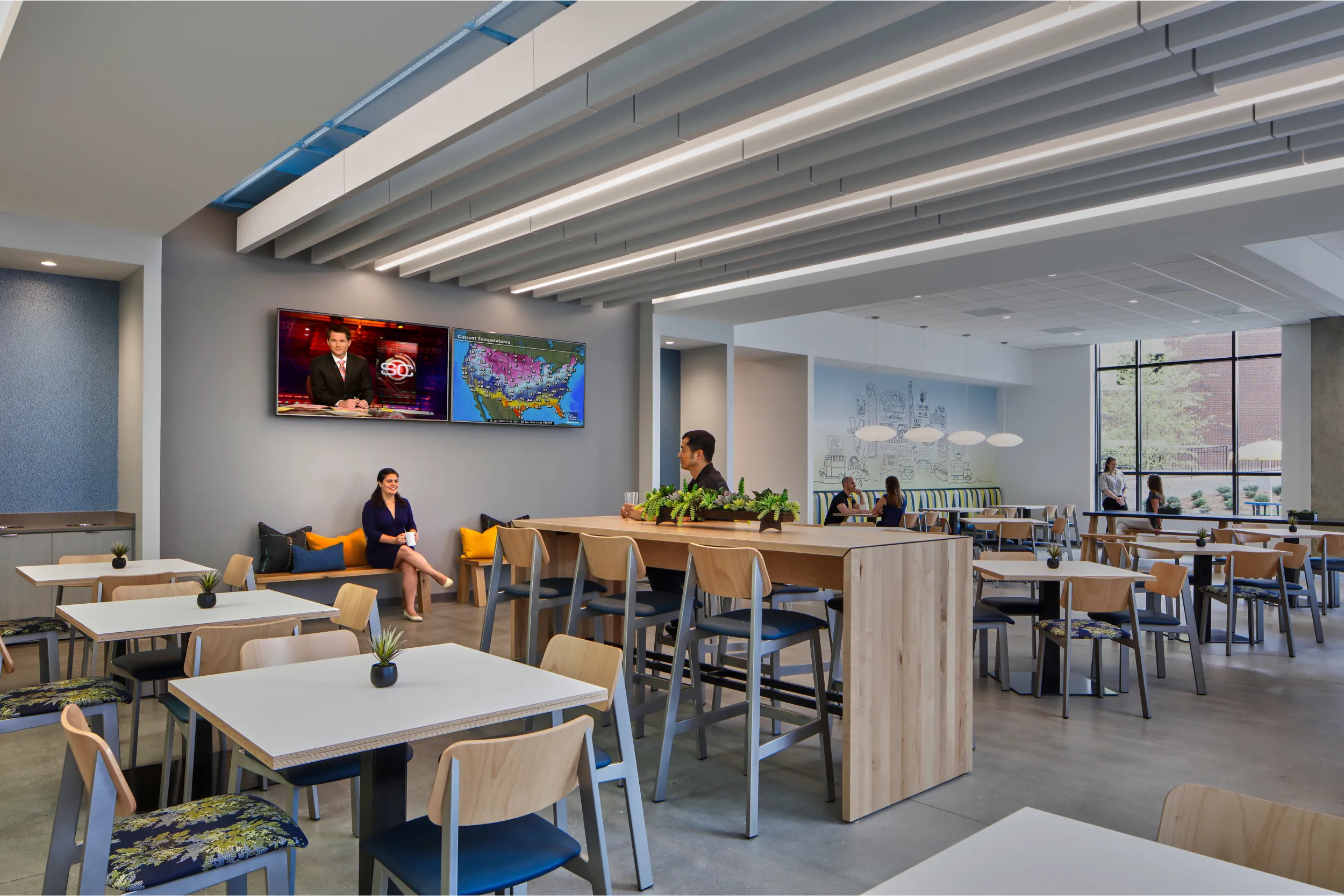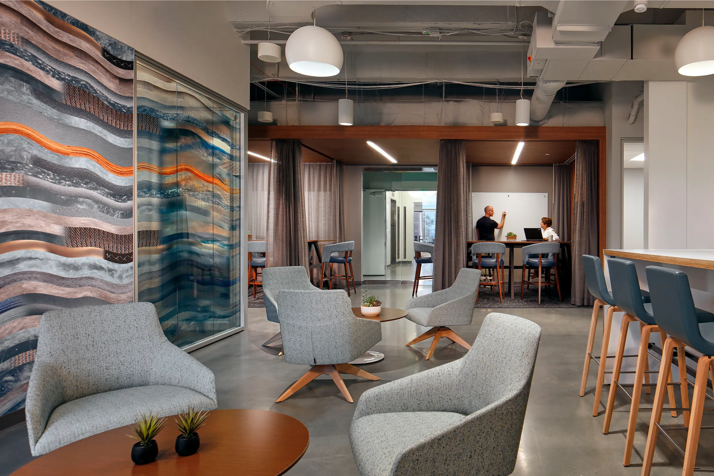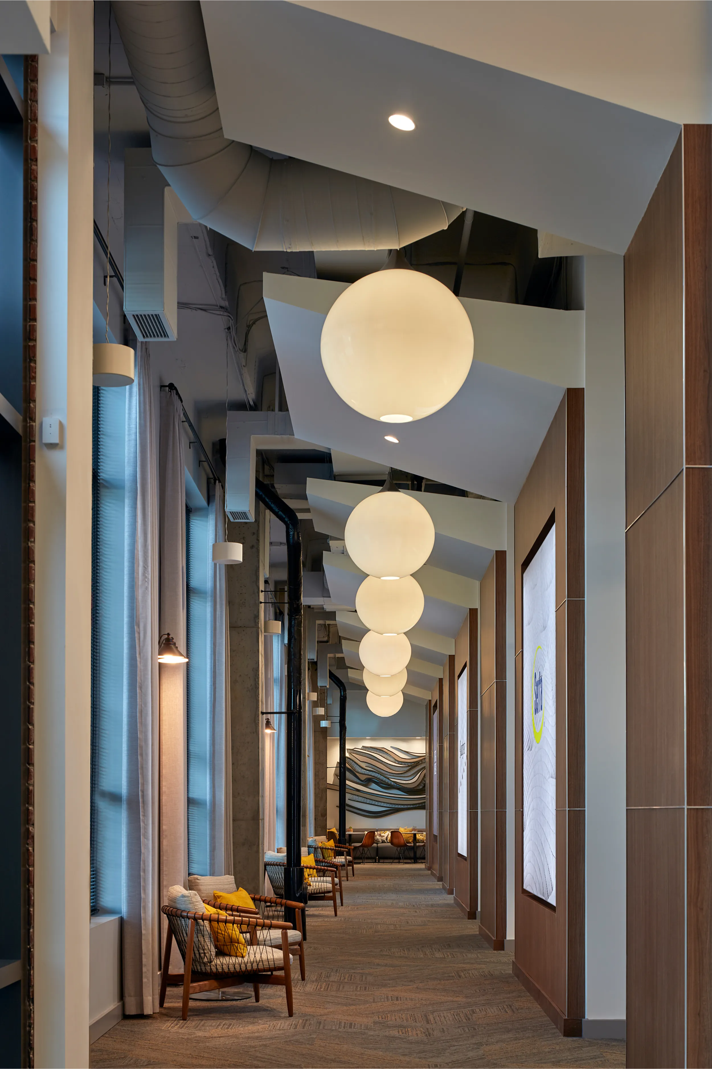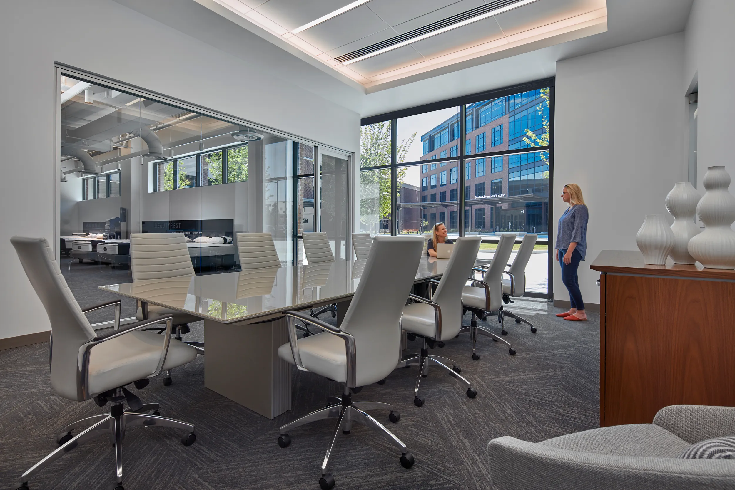Hendrick partnered with SSB to create a headquarters that enhances brand, culture, and employee experience. The design emphasizes collaboration, innovation, and purposeful brand touches, showcasing SSB's legacy and commitment to quality sleep products. By focusing on "Thinking, Working, and Living Differently," the space supports continuous improvement and customer satisfaction through advanced sleep science.