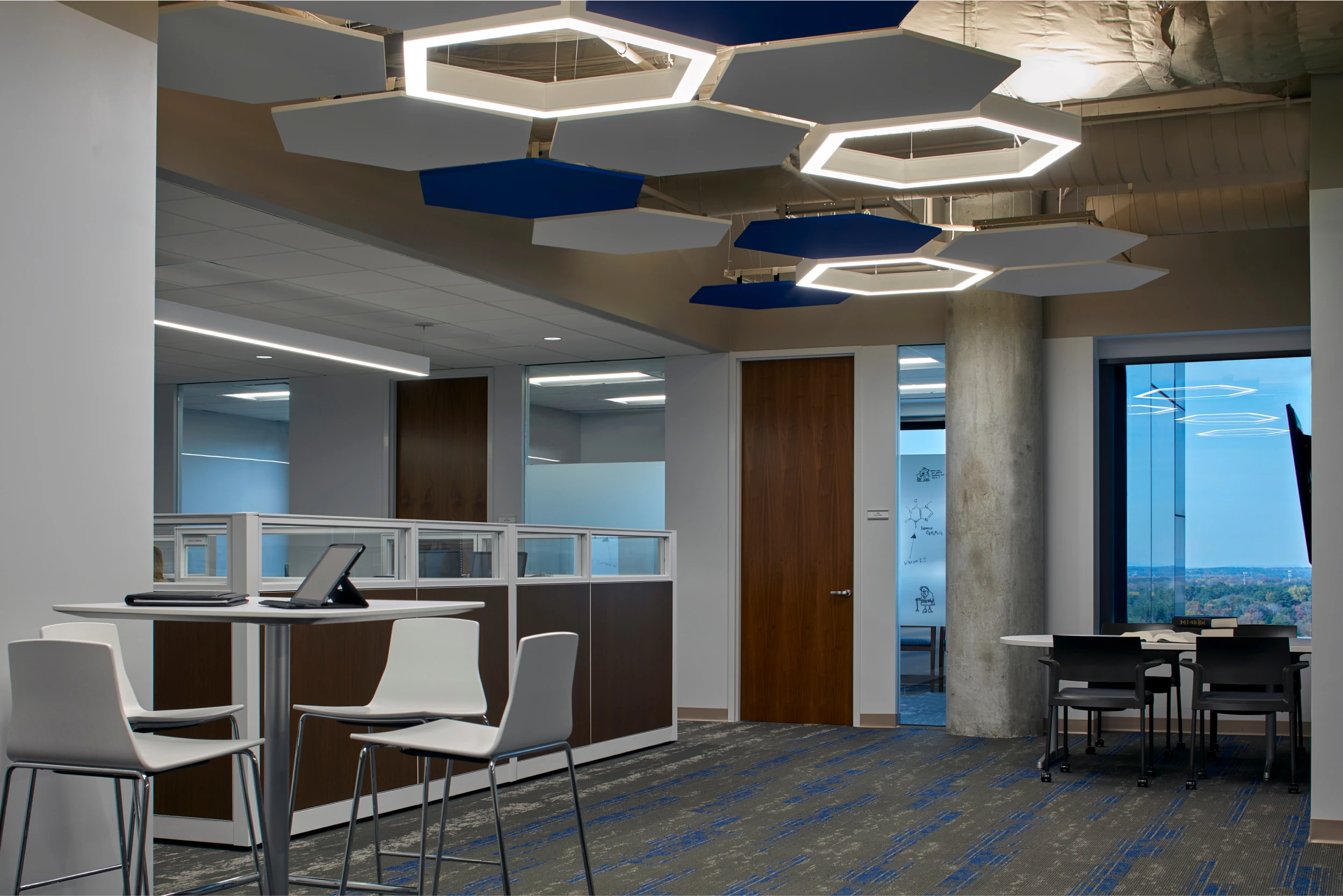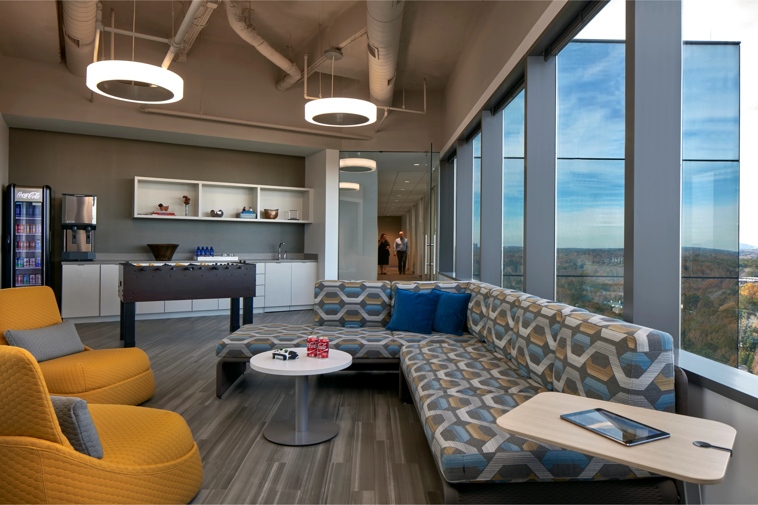 Thomas Horstemeyer, LLP's new office reflects the evolution of legal service firms toward a more progressive aesthetic, emphasizing functional spaces and people-focused design. The office features innovative areas, such as an open employee break area and a gaming room, that break away from traditional law office layouts.