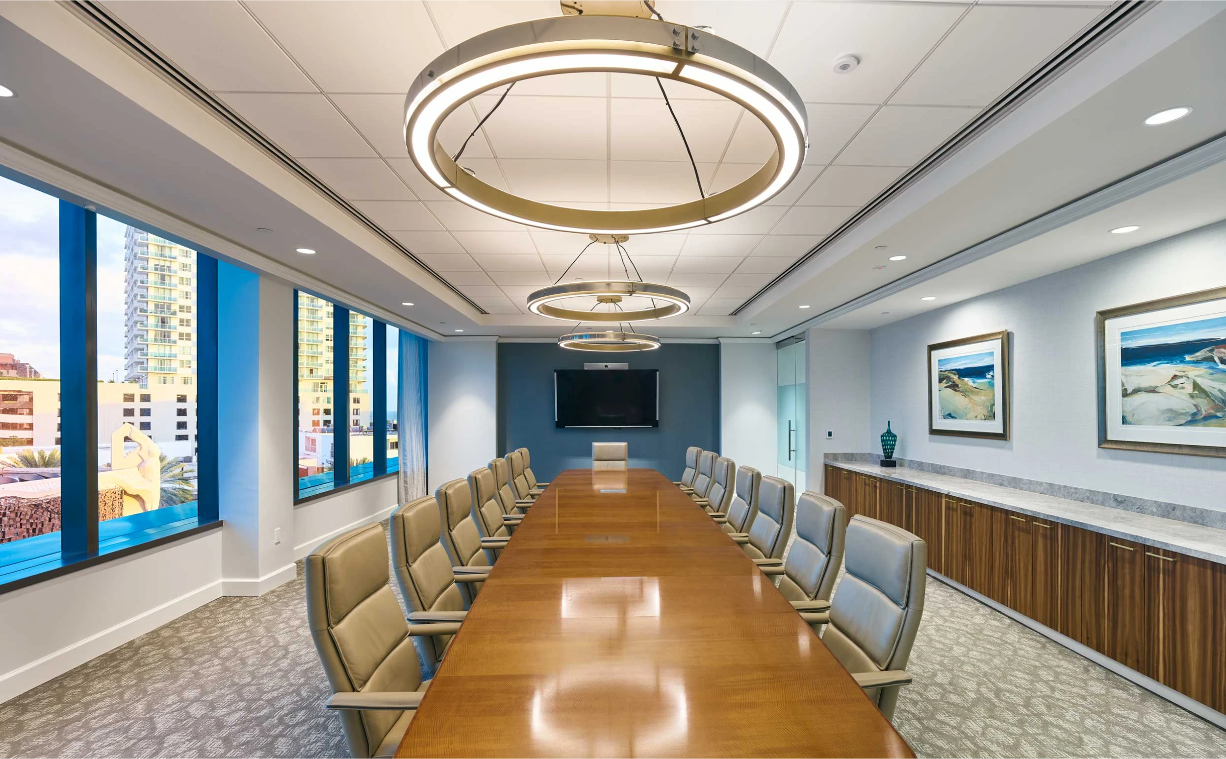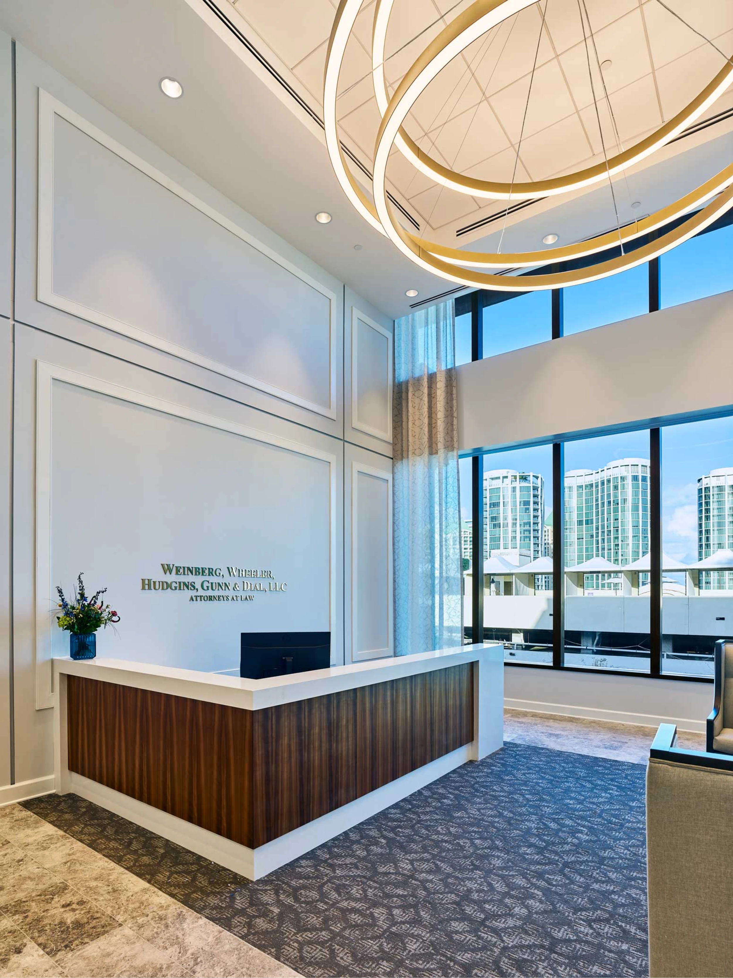 The design for Weinberg Wheeler Hudgins Gunn & Dial’s Miami regional office combined the firm’s national brand standards with the vibrant energy of the Miami location. We created multiple meeting spaces to foster collaboration, private attorney offices for focused work, and open work zones to encourage staff connection. The reception area provides a welcoming, impressive space for clients, reinforcing the firm’s commitment to professionalism and client service. The design successfully blends the firm’s identity with the local culture, creating a functional and inspiring workspace.